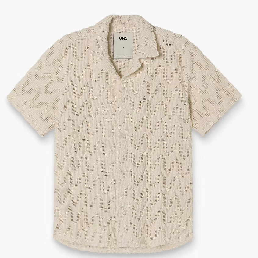OAS Atlas Crochet Cuban Collar Short Sleeve Shirt